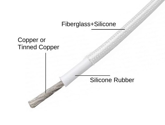 สายไฟทนความร้อนคุณภาพสูง ฉนวนซิลิโคนหุ้มไฟเบอร์กลาส เป็นสายไฟที่ใช้ในงานไฟฟ้า มีคุณสมบัติทนความร้อนได้ดี ทนอุณหภูมิได้สูง ตัวนำเป็นทองแดงเคลือบดีบุก เหมาะสำหรับ ต่อร่วมกับอุปกรณ์ ที่ต้องใช้กับอุณหภูมิสูง เช่น ฮีตเตอร์ (Heater) หรือใช้ในเตาอบที่อุณหภูมิสูง อุณหภุมิไม่เกิน 200 องศา (มีสีให้เลือกหลากหลาย เช่น สีขาว สีแดง สีดำ สีเหลือง สีเขียว สีน้ำเงิน เป็นต้น)